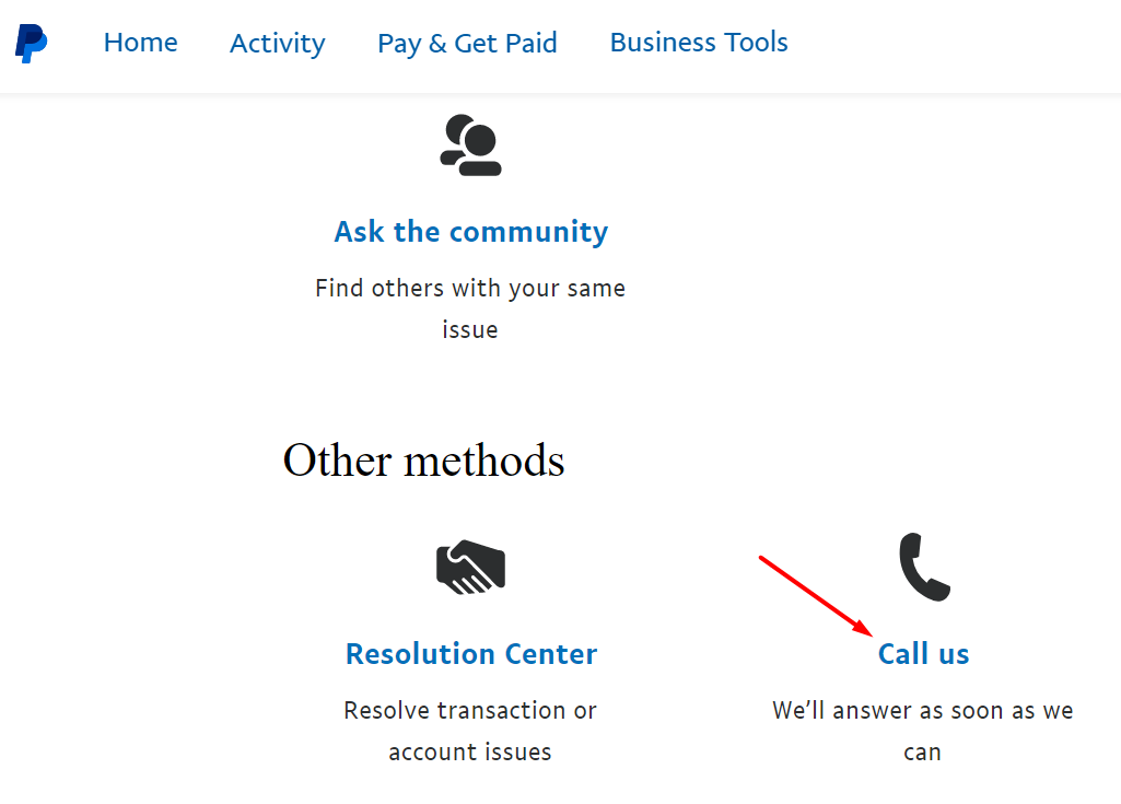 You'll be redirected to the PayPal Customer Service team. On the Contact page, scroll down and click on Call us or Message Center > New Message (you might need to log in to your PayPal account), then initiate a chat with their team and tell them you want to enable Payout permissions so they can assist you further.